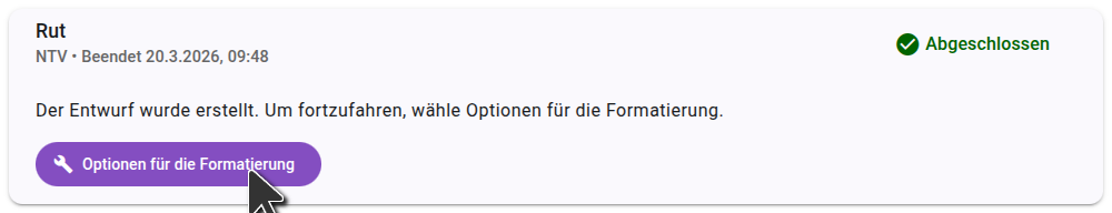 Sobald Du Deine Formatierungsoptionen ausgewählt hast, klicke auf "Speichern", um die Optionen in Deinem Projekt zu speichern. Diese Optionen werden für alle künftigen Entwürfe für das Projekt verwendet. Du kannst diese Optionen jederzeit ändern, und sie werden für alle zukünftigen Entwürfe übernommen.