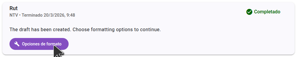 Una vez seleccionadas las opciones de formato, haga clic en "Guardar" para guardarlas en el proyecto. Estas opciones se utilizarán para todos los futuros borradores generados para el proyecto. Puede cambiar estas opciones en cualquier momento, y se aplicarán a todos los borradores futuros.