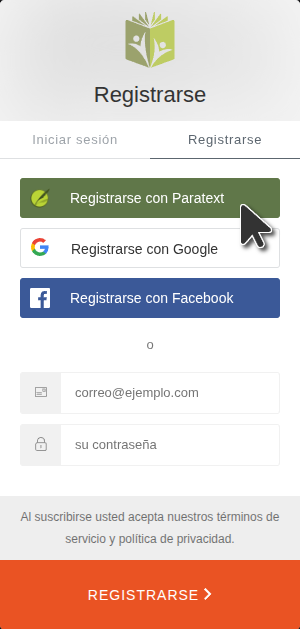 A continuación, haga clic en Iniciar sesión con Paratext o Registrarse con Paratext, según el botón que haya pulsado anteriormente: