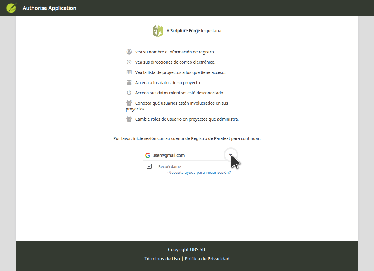 Iniciar sesión en Scripture Forge con una cuenta de Paratext