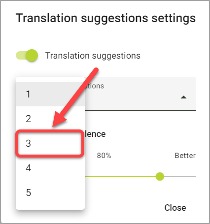 - Click the Translation suggestions switch to show or hide translation suggestions while you type: